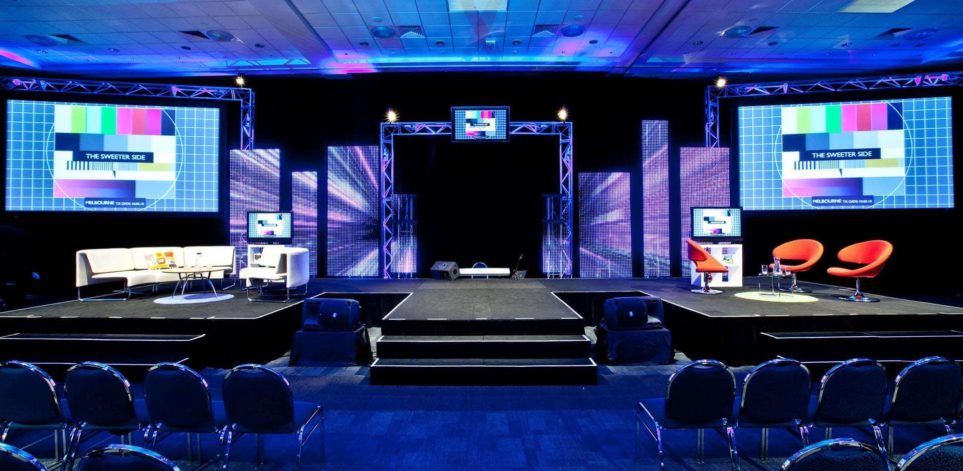 At Spectrum, we believe the stage is more than just an elevated platform; it’s the focal point of your event and where your guests’ eyes will be drawn to. With your brief in mind, we can customise any stage-build to ensure you get the most out of your space, creating a spectacular focus point for your presentations, speeches, and displays. We offer a total staging solution, from stage design, production and installation, through to dismantling at the end of your event. Our AV technicians work closely with our set designers, stylists and crew to ensure even the most creative and technically-demanding stages can be built and safely installed.